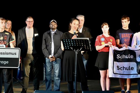 Ein besonderer Höhepunkt war die feierliche Aufnahme unserer Schule in das Netzwerk Schule ohne Rassismus – Schule mit Courage. Frau Michelle Revilla von der saarländischen Landeskoordination überreichte die Urkunde, und wir freuen uns sehr, dass Ibo (Ibrahima) N´Diaye, der unsere Schule schon viele Jahre mit wertvollen Projekten begleitet, die Patenschaft übernommen hat.